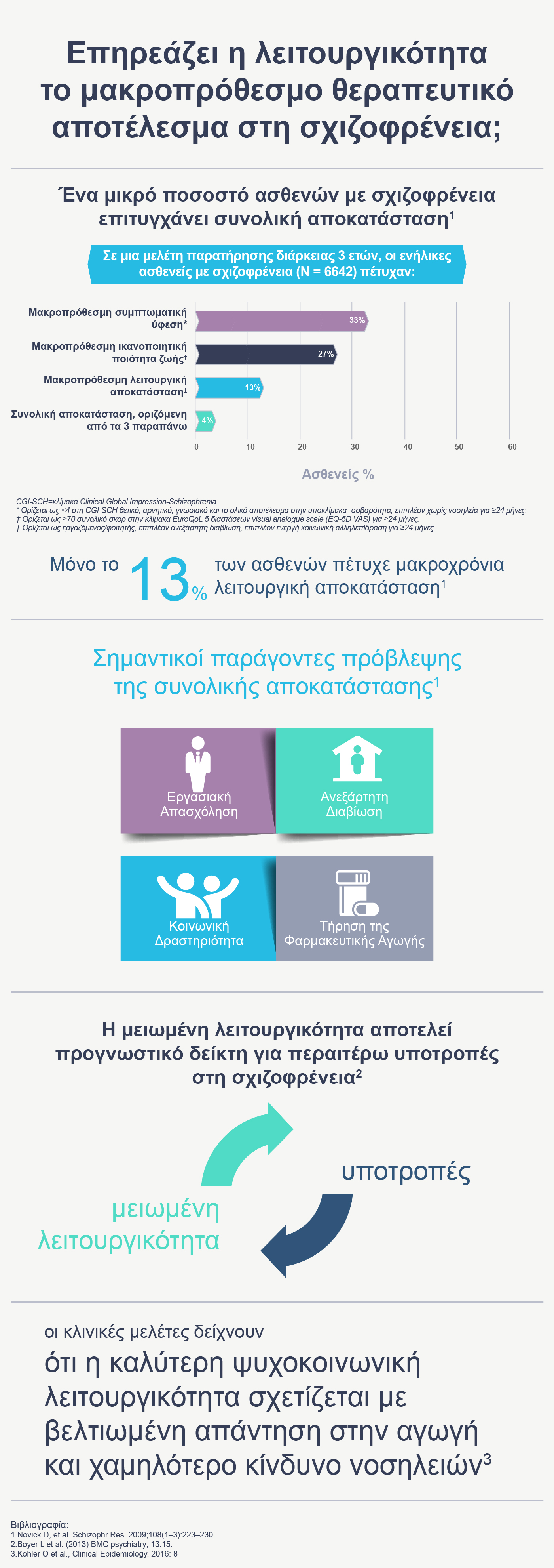 Σχιζοφρένεια 02 Οκτ, 2018 Διαβάστε το χρόνο: 1 λεπτό Πτωχή λειτουργικότητα στη σχιζοφρένεια - Infographic Η λειτουργικότητα αποτελεί προγνωστικό παράγοντα του μακροπρόθεσμου θεραπευτικού αποτελέσματος στη σχιζοφρένεια1. Αναφορές Schennach R et al (2012) Psychiatr Q;83:107-207. Σχετικά Mental Health Άρθρο Η σημασία της προτεραιοποίησης της ψυχικής υγείας στην μετα-COVID19 εποχή - Τι μπορούμε όλοι μας να κάνουμε για να τη διαφυλάξουμε. Κατάθλιψη Άρθρο Ασθενείς με προβλήματα ψυχικής υγείας κατά την πανδημία από τον COVID-19 Mental Health Άρθρο Ισότητα στην φροντίδα της Ψυχικής Υγείας: Αντιμετωπίζοντας την πρόκληση