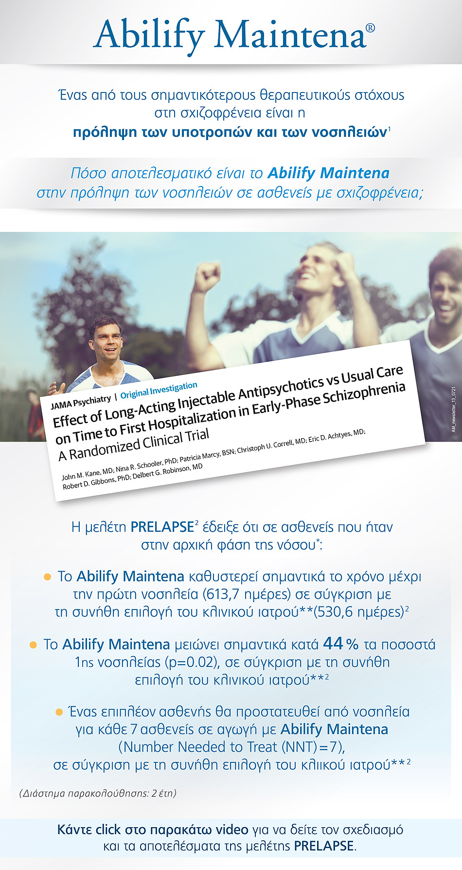 06 Ιουλ, 2021 Μελέτη PRELAPSE: Η αποτελεσματικότητα του Αbilify Maintena σε σύγκριση με τη συνήθη επιλογή θεραπείας του κλινικού Σχιζοφρένεια